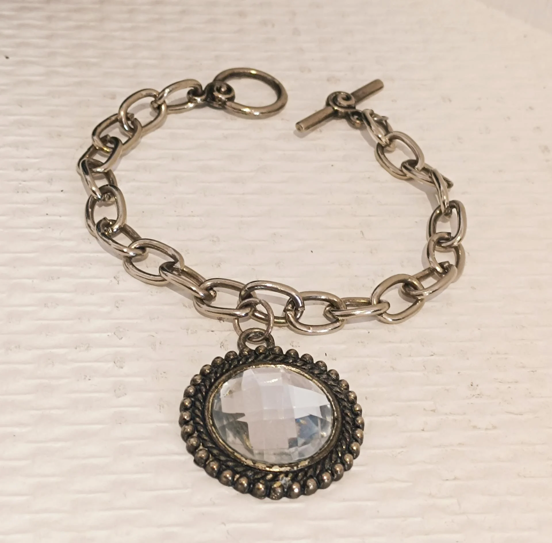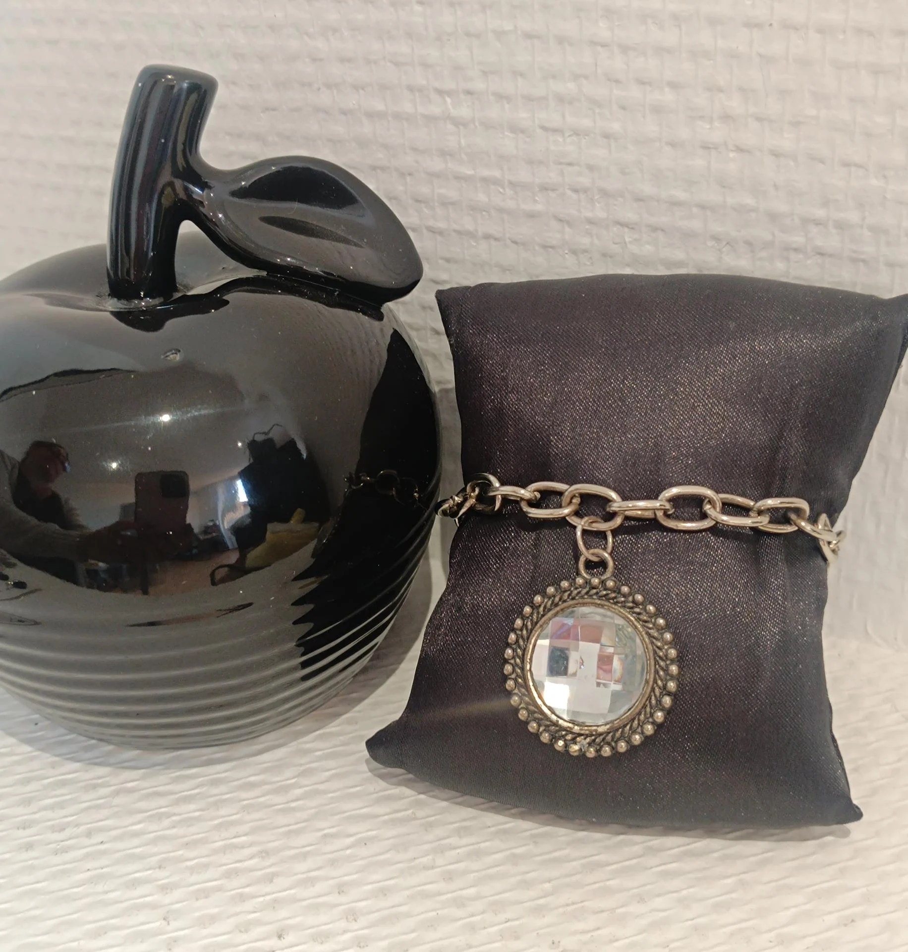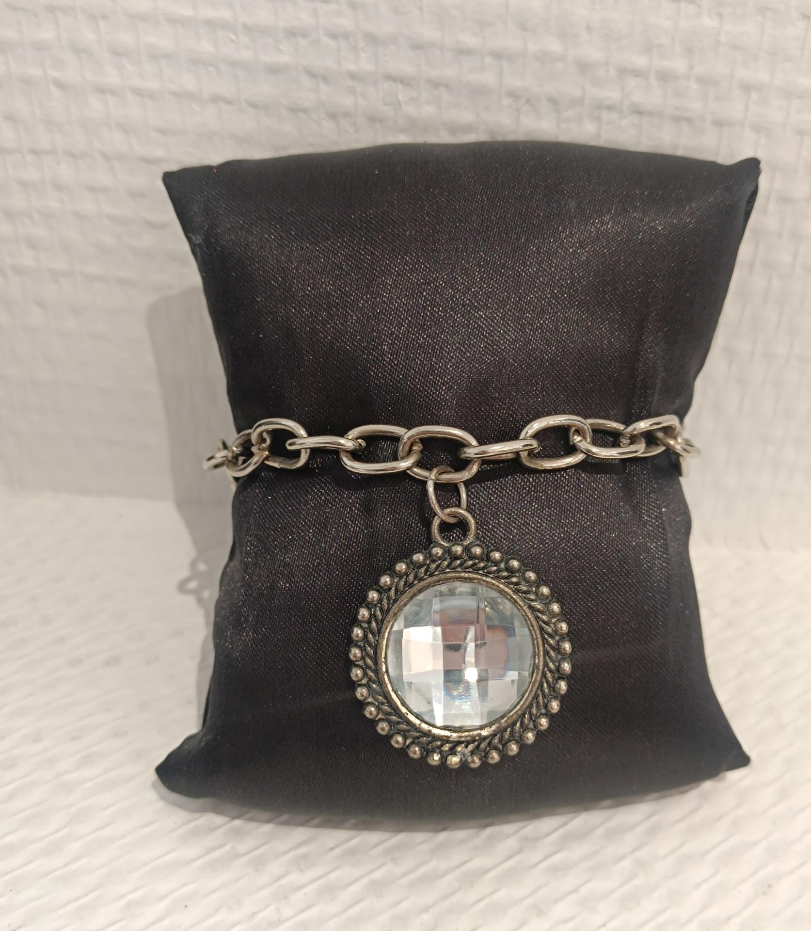 Bracelet chaîne et rond strass en argent du tibet. Fermoir forme T.