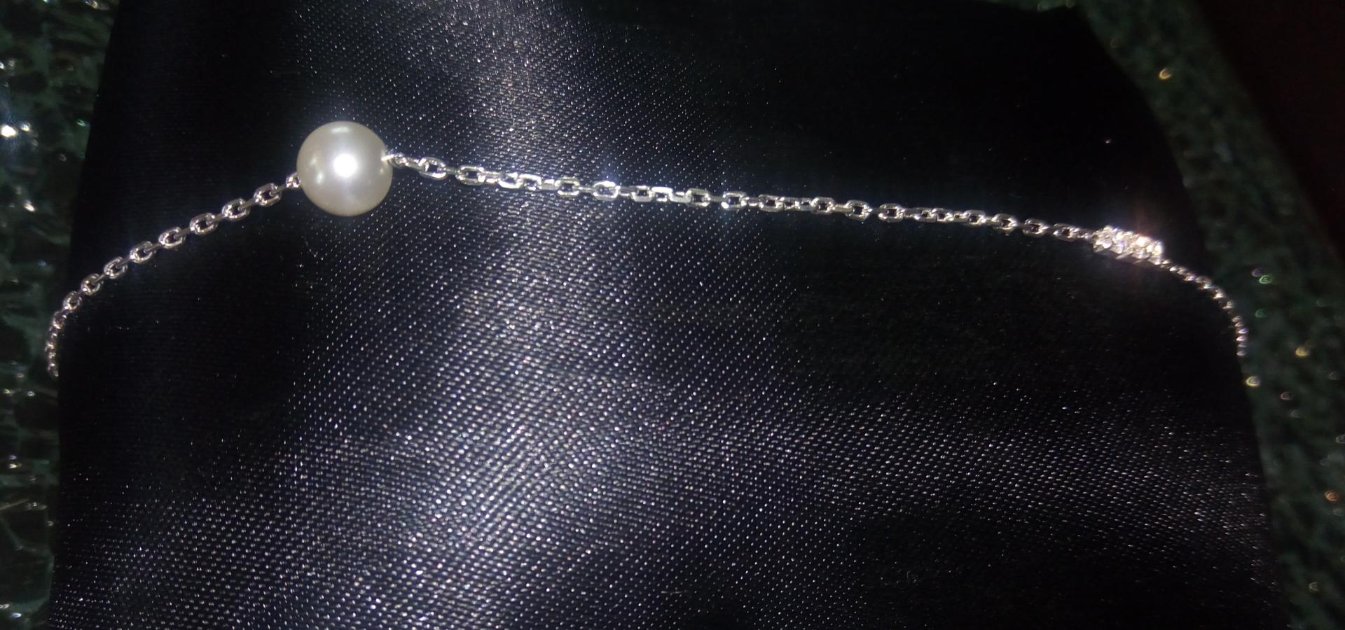 Chaîne de cheville argent 925, perle et strass, réglable.